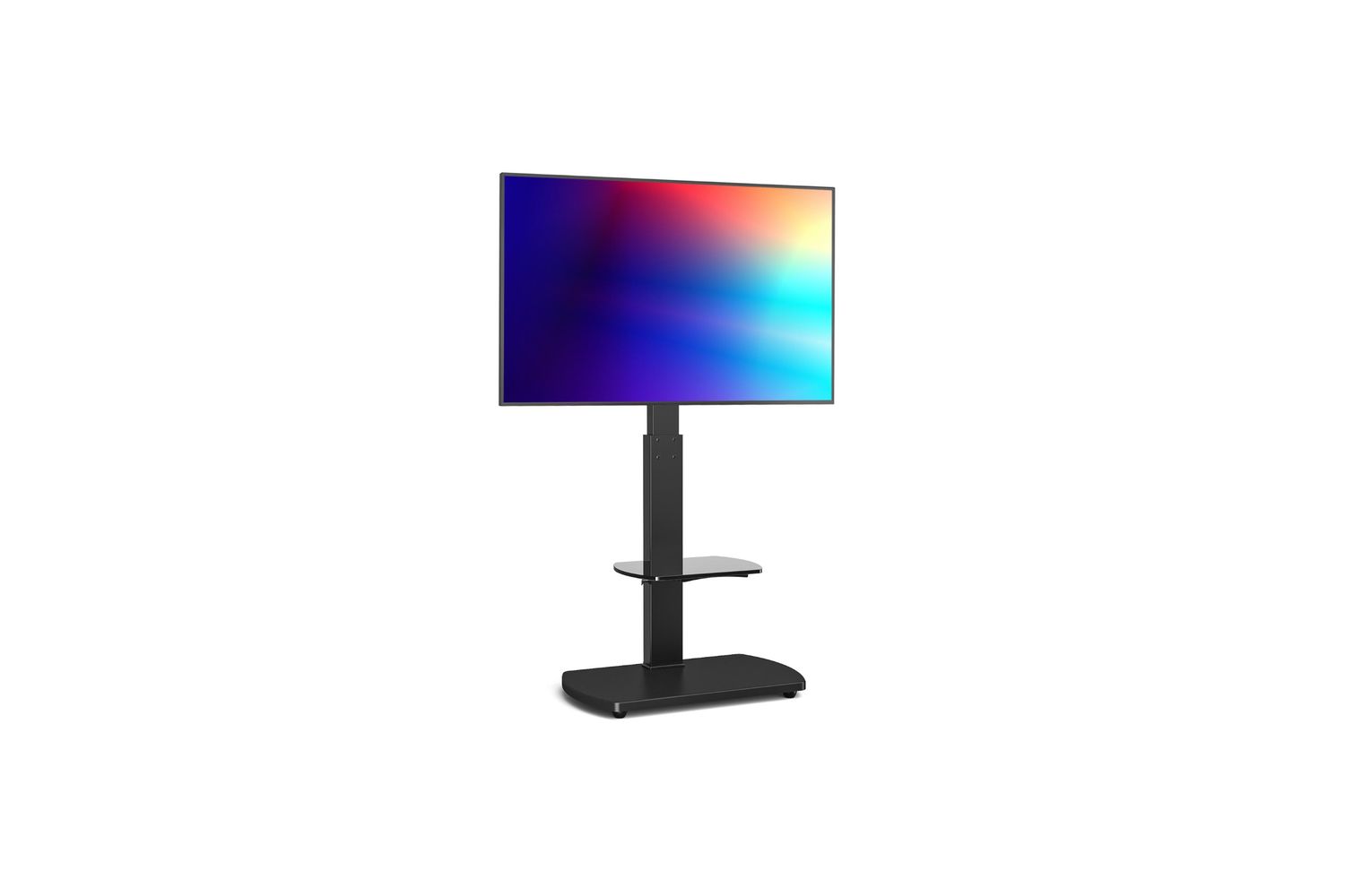 One of the standout features is the integrated toughened glass shelf, perfect for housing your set-top box, Blu-ray player, or games console. The shelf is spacious enough for devices up to 400mm wide and 290mm deep, keeping your electronics organised and within easy reach. The rounded black base not only complements the look of most modern TVs but also adds a touch of sophistication to your home décor.